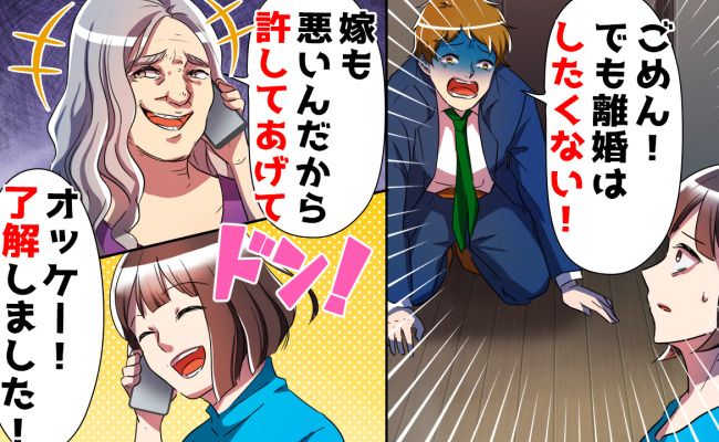 その上、「不倫されるような嫁も悪いんだから許してあげて。これからはあなたも反省して本妻として息子を支えてあげなさいよ?」と言ってきたのです。