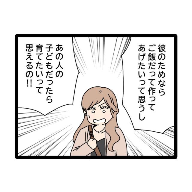 「彼のためならご飯だって作ってあげたいって思うし、あの人の子どもだったら育てたいって思えるの!!」