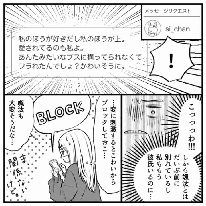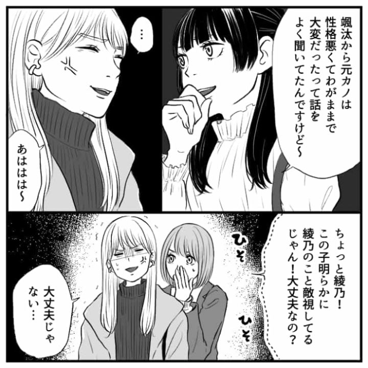 元カレの今カノに敵対されてしまった主人公。今の自分と関係ないことは無視して、これからの事を考えて行くのが大切ですね。