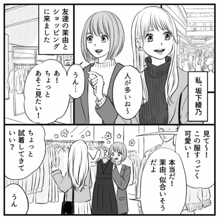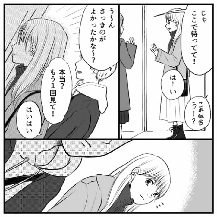 友達とショッピンングに出かけた主人公。友達と試着室に向かうと、そこには元カレの姿が・・・。