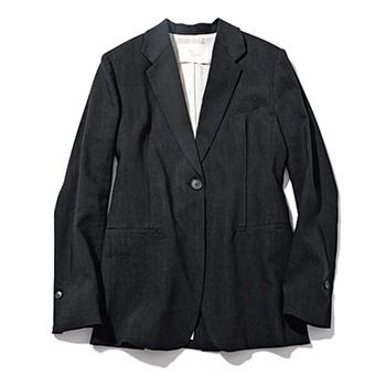 黒ジャケット/TELA(ティースクエア プレスルーム) 肩パッドによるストイックな印象に、くびれたウエストの女性らしさなど、普通なようでふつうじゃない、スタイルUPに効果大なデザイン。