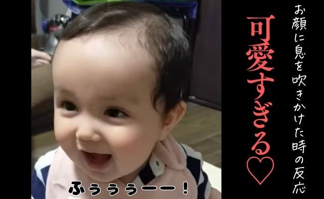 お顔に息を「ふぅぅーー!」とすると…赤ちゃんの可愛すぎる表情に注目♪何度も見ちゃう人続出ですよ!