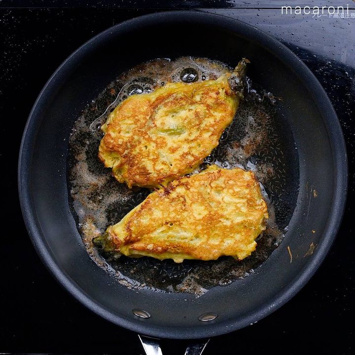 なすはしっかり卵にくぐらせ、卵液を切らずに焼いてください。