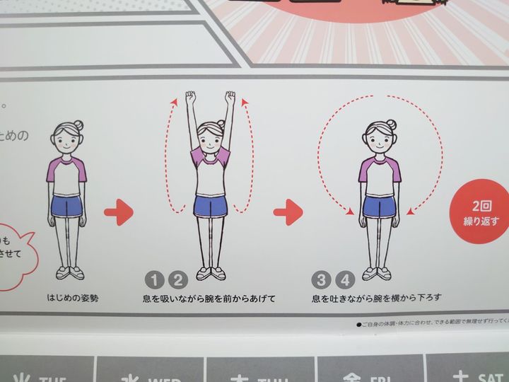 実際、私も本気でラジオ体操第1をすると、汗ばみます。3回連続でやるとかなり汗だく。社内行事で人前で複数回実技する機会があると、翌日から丸5日間下半身の激しい筋肉痛でよろよろしてました(笑)。