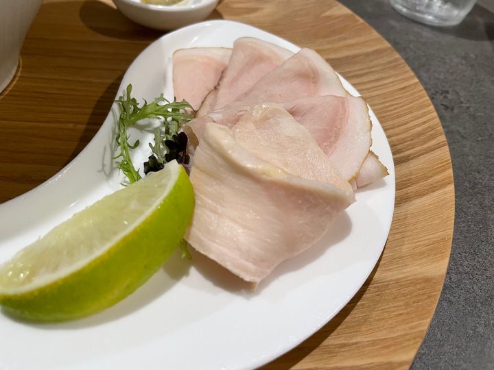 ライムと、にんにくソースも添えられていて、食べ進める途中に追加することでまた違った風味を楽しめます。 にんにくソースは、ラーメン店でよくいただくザ・にんにくではなく、ペースト状のおしゃれなもの。にんにくの香りを強く感じず上品で、スープをピリッと引き立ててくれます。