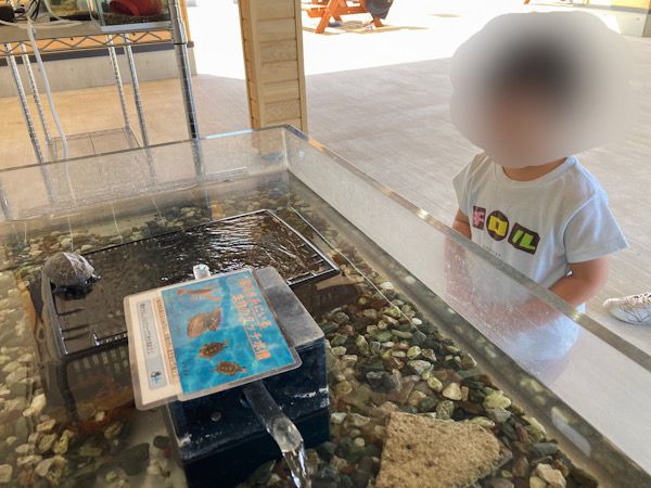 涸沼の生き物の水槽展示とタッチプールには、息子も興味津々!