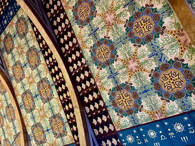また、天井の装飾を近くから改めて見てみると、紋様の細かさに驚き。