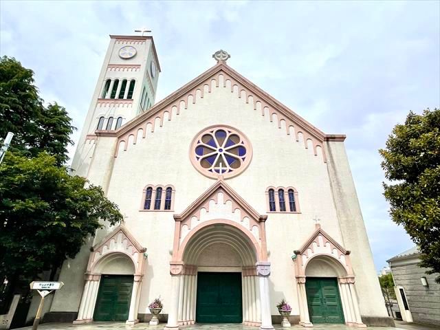 白を基調とした外壁が映えるロマネスク様式の聖堂は、1954年に完成し、2024年5月で落成から70年! 戦後まもなくから教会の活動が始まり、この地で長い歴史を歩んできました。