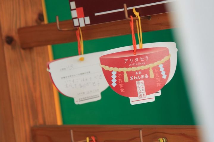 アリタセラ内には上有田駅近くにある「陶山神社」の分霊の御神体、「茶わん神輿」があり参拝ができます。また役目を終えた愛用の茶わんを持参し、茶わん型の絵馬に感謝の言葉を書き添えて奉納すると「茶わん供養奉納」してくれます。