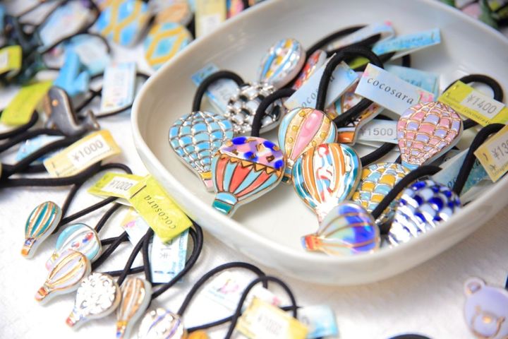 佐賀県は、アジア最大のインターナショナルバルーンフェスタが開催される場所。人気のモチーフもやはりバルーンで、ヘアゴムは1300円~。