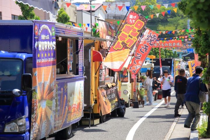 2024年は有田駅そばにキッチンカーや屋台が集まる「キッチンカーマルシェ」が登場しました。チュロス、たこ焼き、ロングトルネードポテト、ソフトクリーム、焼きそば、さつまいもスティック、唐揚げなど15店舗が一堂に。中にはさまざまなフェスティバルでグランプリを受賞した有名店も!