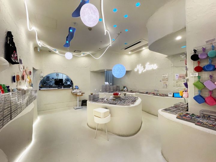 「月の洞窟」をイメージしたという店内には、韓国直輸入のものや、さまざまな素材のワッペンがたくさん。かわいいアイテムも並んでいて、見ているだけでもワクワクします♪