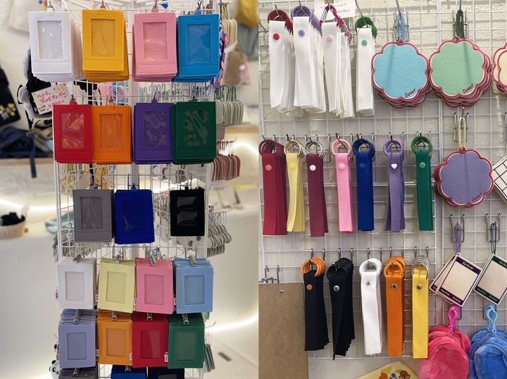 キーホルダーやカードケースもご覧のとおりの豊富なカラー展開で、推し活にもぴったり! 推しの名前のワッペンを付けてイベントに参加する人もいるのだとか。
