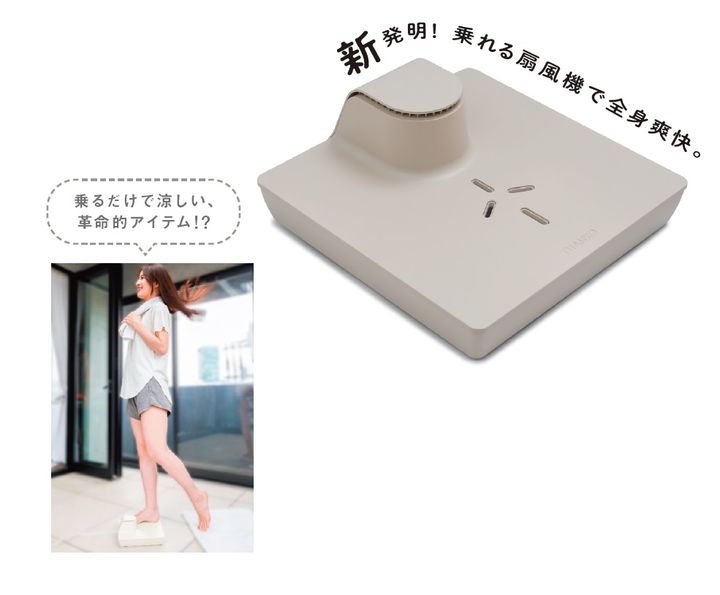下から吹き上げる風を浴びられる乗るタイプの扇風機。奥行き25cmと体重計ぐらいのサイズ感で、体重がかかったその瞬間から強力な風が出る自動スイッチが特徴。濡れた足でも使えるからお風呂あがりにピッタリで、これからの時期に大活躍! ¥9,980(サンコー TEL:03・3526・4326)