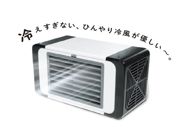 冷風・送風の2WAY式ミニクーラー。専用タンクに水を入れて凍らせてセットすれば冷風機として、専用タンクを使用せずともミニ卓上送風機になる万能ぶり。送風口を上下させて送風位置の調整も可能。優しく冷たい風がやみつきに。参考価格¥2,480(ハック TEL:0120・976・089)