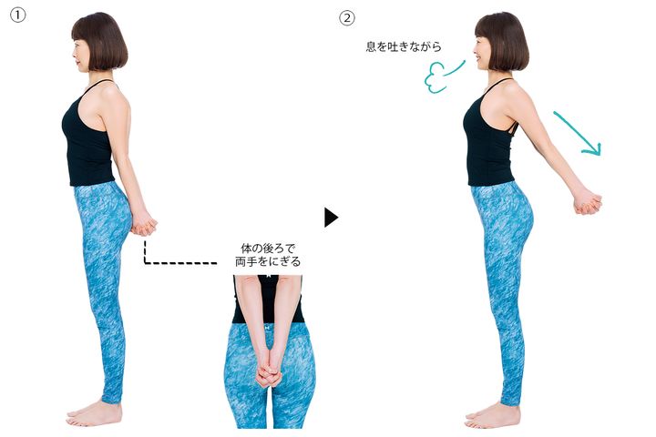 ①胸を気持ちよく伸ばして猫背や巻き肩を解消