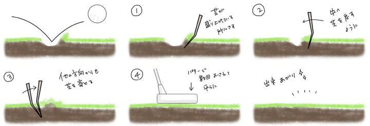 今回は、そんなピッチマークの直し方と、お洒落の一部とも言えるようになってきたグリーンフォークの最新事情についてお話していきたいと思います。