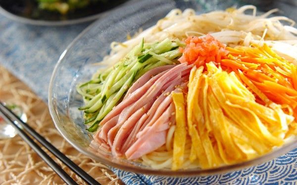 日本発祥の冷やし中華も、関西では一般的に冷麺と呼びます。黄金比率のタレを覚えておけば、もう市販品いらず。ハム、錦糸卵、キュウリ、ニンジンなどをトッピングして、色鮮やに仕上げましょう。食欲をそそられますね。