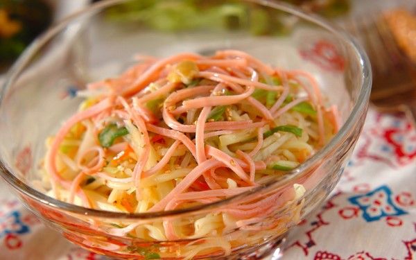 キャベツ、ニンジン、モヤシなどの野菜をたっぷり使う冷麺です。主食としてだけでなく、少量でサラダとして食べるのもアリ。野菜不足を感じている方やあっさりと食べたい方にもぴったりです。