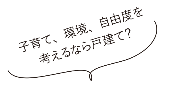 子どもが生まれたのをきっかけに急いで建売住宅を購入しました。子どもの声や音を気にせず、のびのびと暮らせました。急いでいたので建売住宅にしましたが、2人目が生まれるときには、広さや間取りにこだわって注文住宅を建てました。(Y・K)