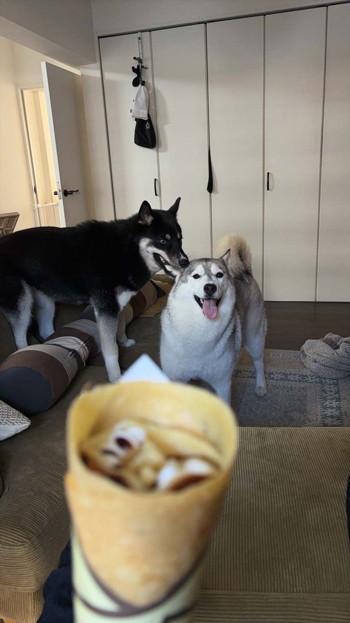 3. クレープに目が釘付けのハスキー犬が・・「ガッツリイカれてる〜」「結構ガブリといかれてますね」