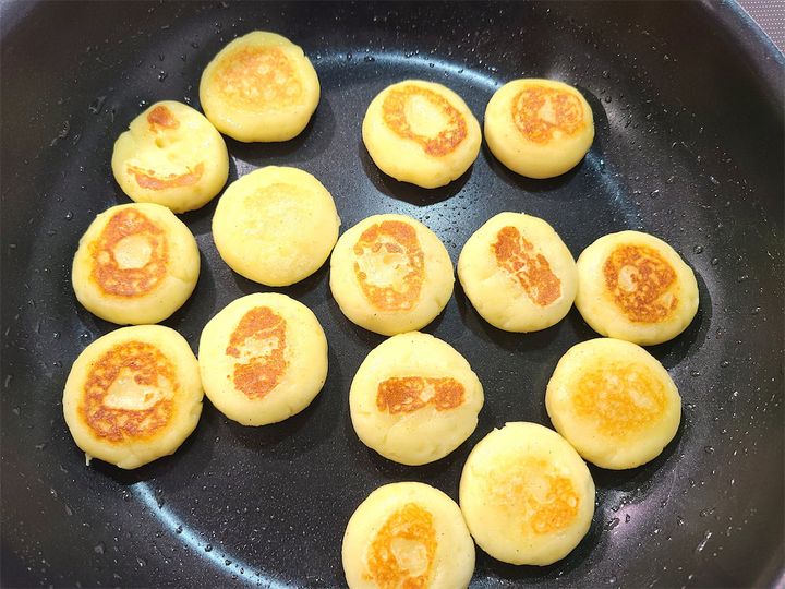5. 両面焼き色がつくまでじっくり焼いたら、いももちは完成です!
