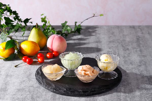 夏にぴったりの「グラス オ フリュイ」は白桃、ラ・フランス、レモン、佐藤錦の4 種類のフルーツのおいしさを堪能できるよう、厳選した産地から仕入れた食材を使用。常温での持ち歩きができて、自宅で凍らせて食べるシャーベットなので手土産にもぴったり。午後のティータイムや食後のデザートに楽しみたいひんやりスイーツです。