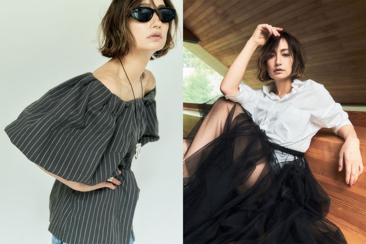 「色、素材、フォルムでいかにエッジをきかせるか、がミューズらしいブラウス選びのコツ」(加藤さん)