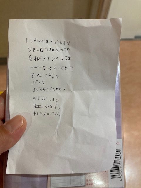 店員さんもメモを取るのが大変なのであらかじめ、どのアイスを買うか決めてメモを持参するのがおススメです!