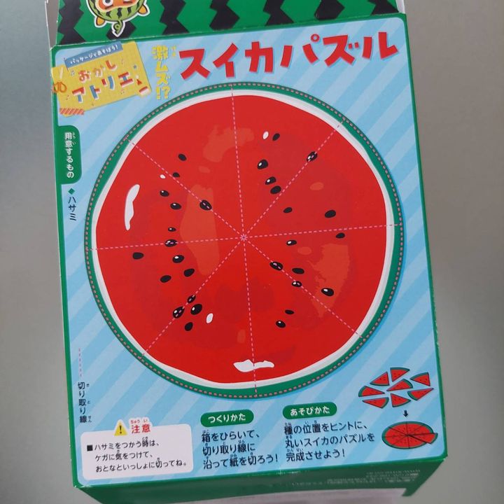 先日、購入すると箱にスイカパズルとミニチュアが付いていました。