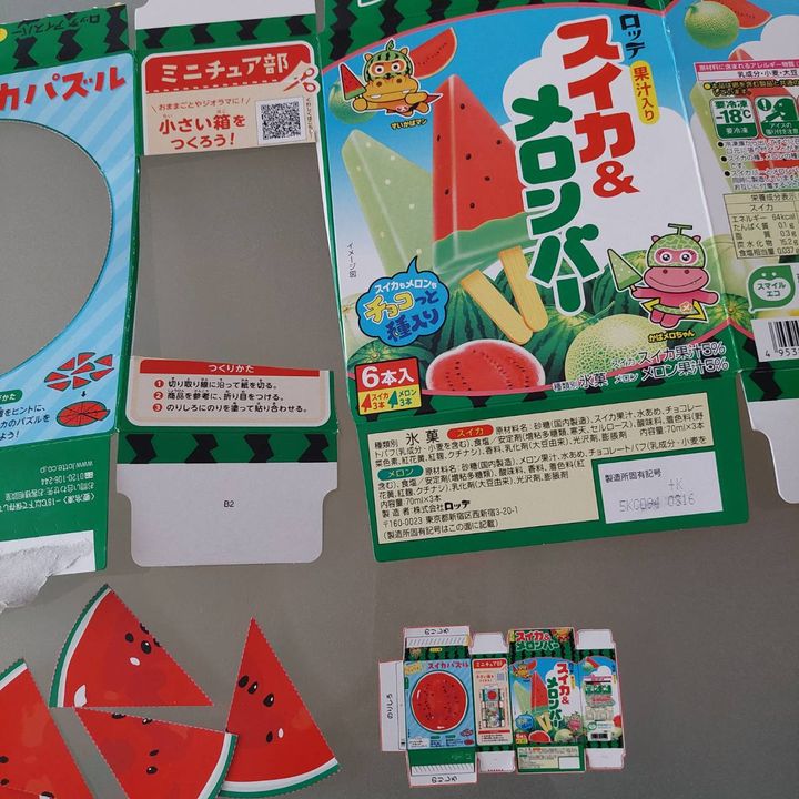 3. スイカ&メロンバーの箱にパズルとミニチュアが付いてるよ!