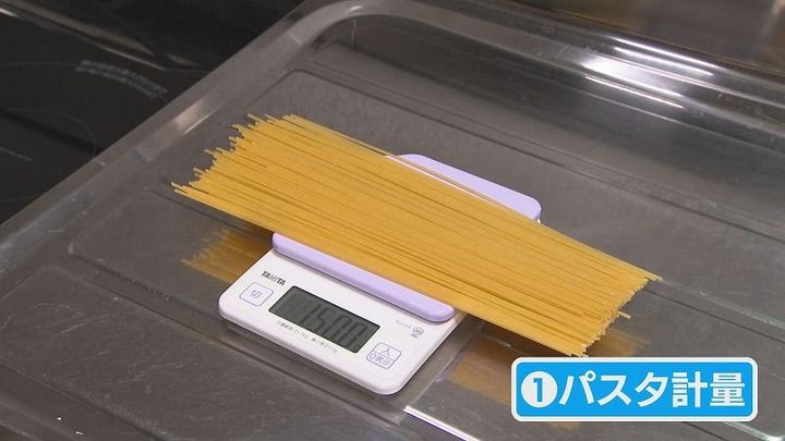 ちょうど1人前:およそ150gのパスタを計る事ができます。
