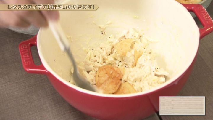 ③レタスを大きめにちぎり、②にポテトチップを入れ、パリパリな食感がなくならないうちに食べる!