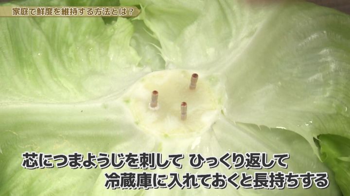 笹井さん「芯につまようじを刺して、ひっくり返して冷蔵庫に入れておくと長持ちします!」