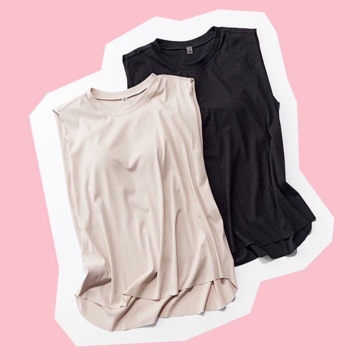 シンプルで女っぽく着られるボディウェアに定評あり。 カップ付きノースリーブカットソー各¥11,000(ともにサク・レ/ロイネ)