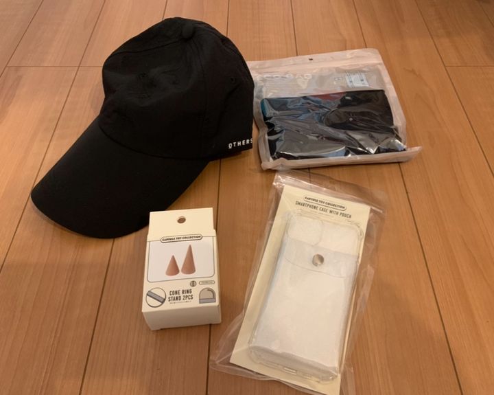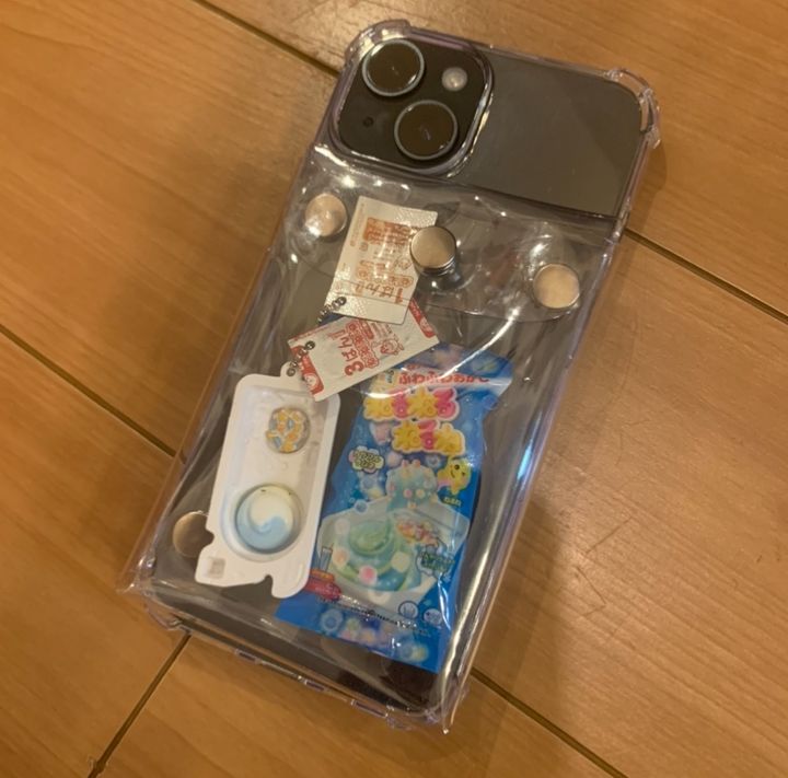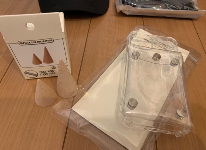 カプセルトイの収納が出来るクリアポーチ付きスマホケースとリングホルダー