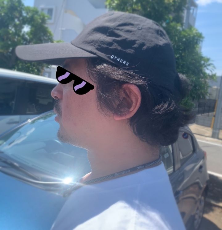 ツバが長めなのわかりますかね??肩にも影が出来ています