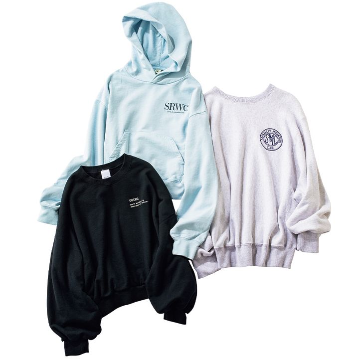 【右から】スウェット¥26,400(SEA/S–STORE)フーディ¥30,800(スポーティアンドリッチ/アパルトモン 青山店)スウェット¥23,100(TOIRO.)