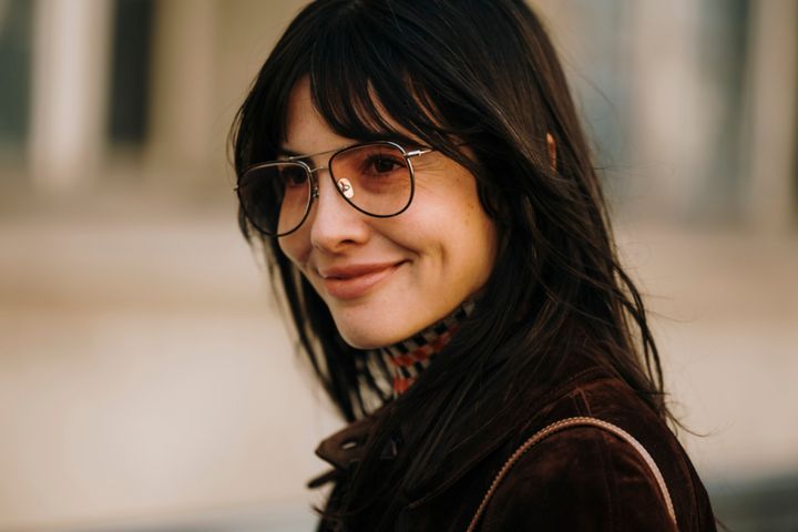 クリエイティブ・コンサルタントのエミリー・シンドレフはダブルブリッジの眼鏡がお好きな模様。