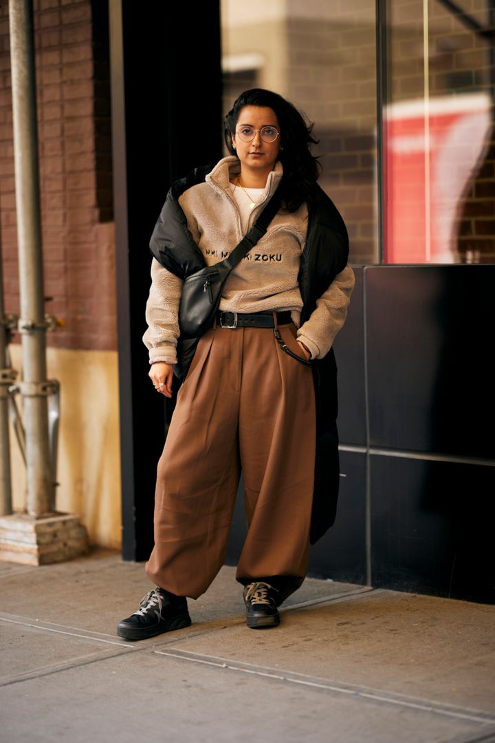 ファッションブロガーのキャロリーヌ・ダウアは、ちょっぴり変わった半月型をチョイス。
