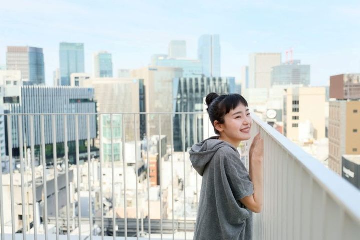 清水さんのお気に入りは、屋上にあるパブリックサウナのととのいスペース。12Fから屋上に続く階段を上ると、インフィニティテラスが広がります。