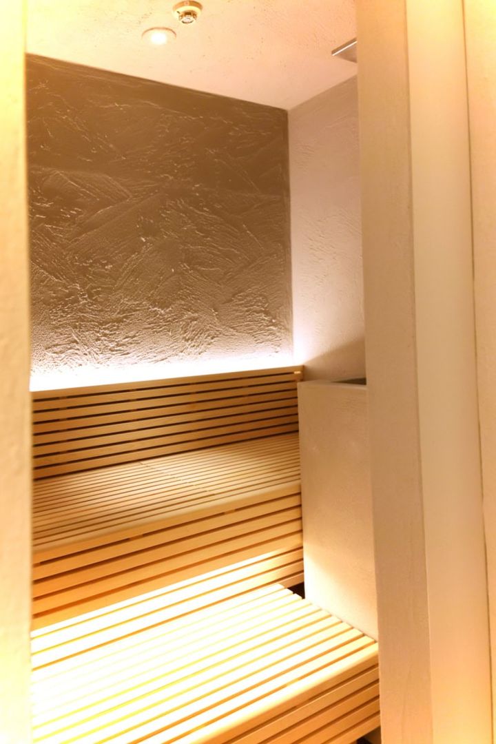 12Fのパブリックサウナは男性専用ですが、毎週火曜は女性も入ることができるレディースデー。ヒノキを贅沢に使った広々としたサウナは、15名ほど収容。15分に一回、オートロウリュが実施され、じっくり温まることができます。