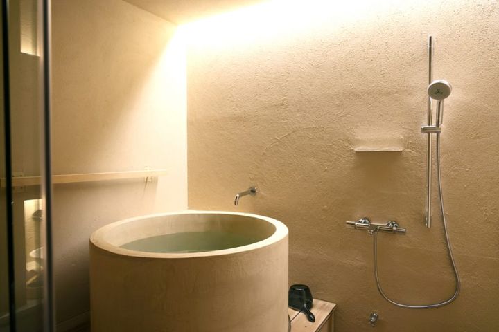 コンパクトな一人用のサウナは、立ったまま入る、水深約1mの深い水風呂が特徴。一人でじっくりサウナを堪能したい人におすすめです。