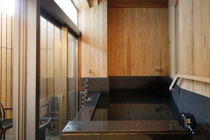 二人用のサウナは、落ち着いた色調の空間。頭までしっかりクールダウンできる、寝湯タイプの水風呂を設置。専用のバルコニーで、外気浴することができます。