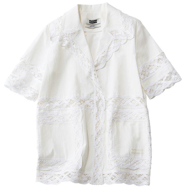 レースなのにどことなくモードな開衿シャツは、韓国の今注目ブランドEENKの新作。 シャツ¥49,500(インク/ユナイテッドアローズ 原宿本店)