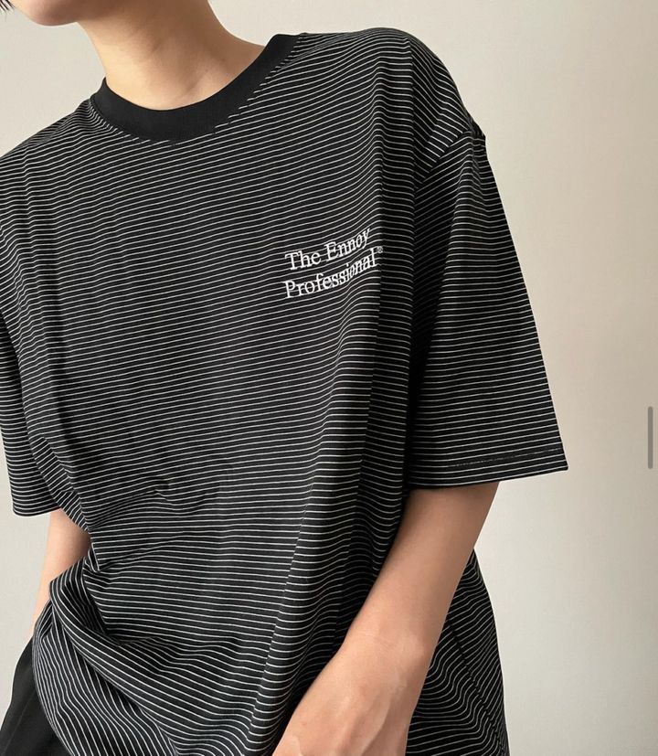「着用しているTシャツのブランド、エンノイはメンズブランドですが、だからこそ女性が着ると違う魅力があると思います。シンプルなデザインのアイテムはさり気ないデザインがきいていて、着ているだけで他と差を出せるブランドだと思います」ENNOYのTシャツは本人私物