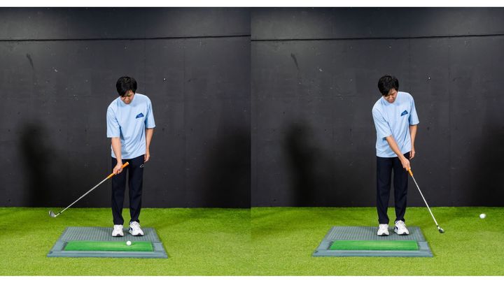 その後でボールを打つと、フェース面でボールをつかまえている感覚を得られるはずです。もちろん、先ほどのスイングを変えないことが条件になります。