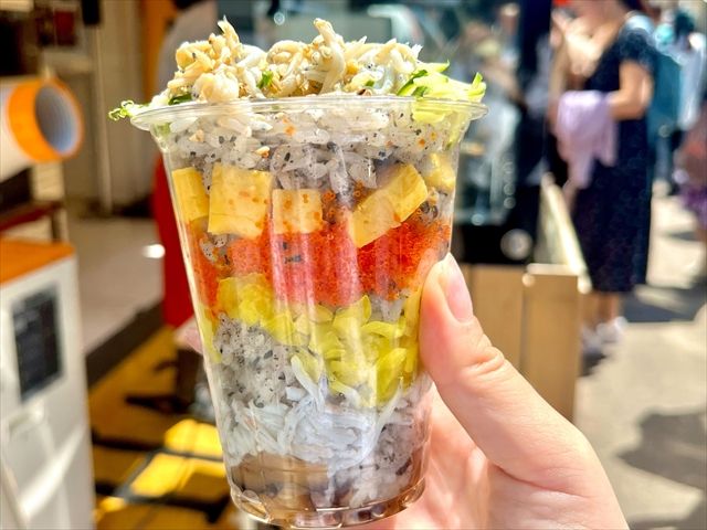 【釜揚げしらす丼がカップに!鎌倉小町通り】「はんなりいなり」のミルフィーユカップ寿司