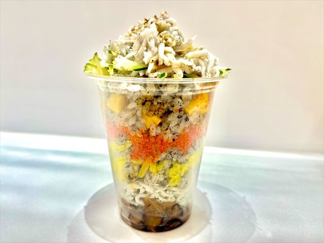 3. 【釜揚げしらす丼がカップに!鎌倉小町通り】「はんなりいなり」のミルフィーユカップ寿司
