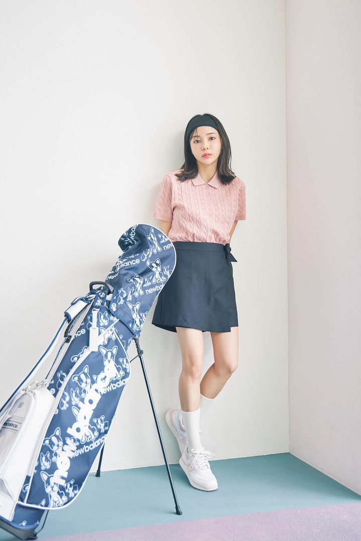 [キュロットパンツを着回し]シャツ¥5,999/ティゴラ キャディーバッグ¥39,600、シューズ¥15,400/ニューバランス ゴルフ
